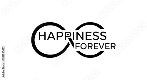 Happiness forever text with infinity symbol, everlasting joy and endless bliss.