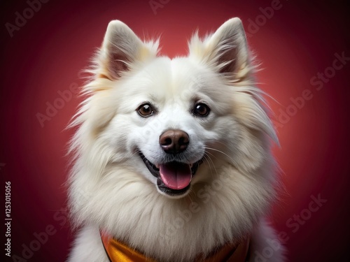 Happy American Eskimo Dog in Red Swimming Vest - Close-up Portrait
