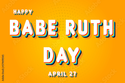 Happy Babe Ruth Day, April 27. Calendar of April Retro Text Effect, Vector design
