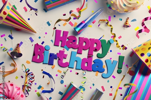 Happy Birthday banner with colorful confetti and streamers, enhancing the festive and joyful spirit of birthday celebrations