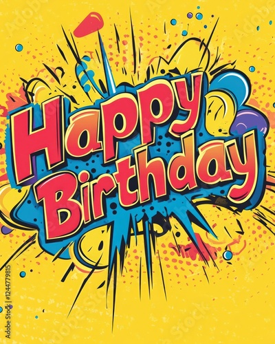 Happy Birthday! Comic Book Style Explosion of Celebration.