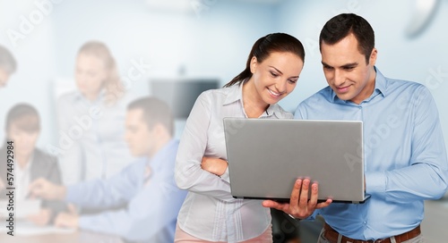 Happy business team working in office