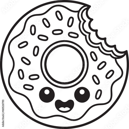Happy cartoon donut with sprinkles and a bite taken out food sweet