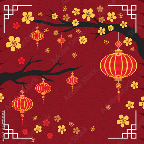Happy Chinese new year 2024 the dragon zodiac sign with fireworks over city on color background