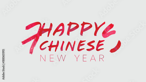 Happy chinese new year greeting card with red calligraphy text on gray background for festive celebration
