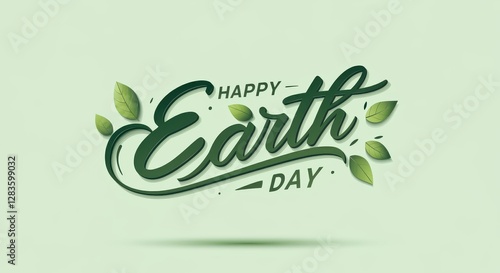 Happy Earth Day lettering text with green leaves on white background. Vector illustration.