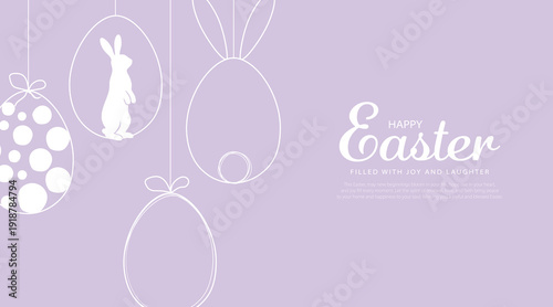 Happy Easter card with easter eggs garland and rabbit. Simple vector decoration design.