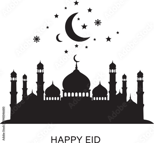 Happy Easter Silhouette Vector Set with Bunny, Eggs, Chicks and Spring Elements