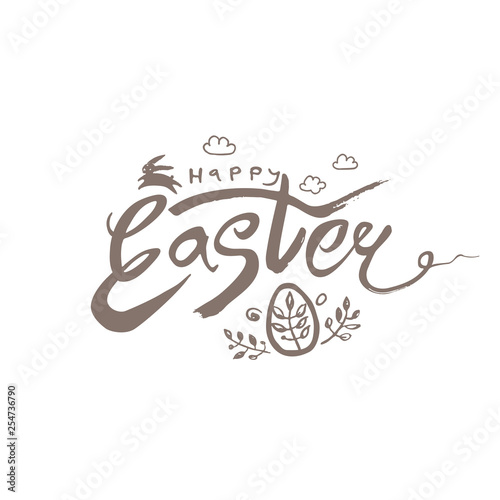 Happy Easter. Vector illustration easter logo dry brush painting. Easter bunny, inscription and easter egg.