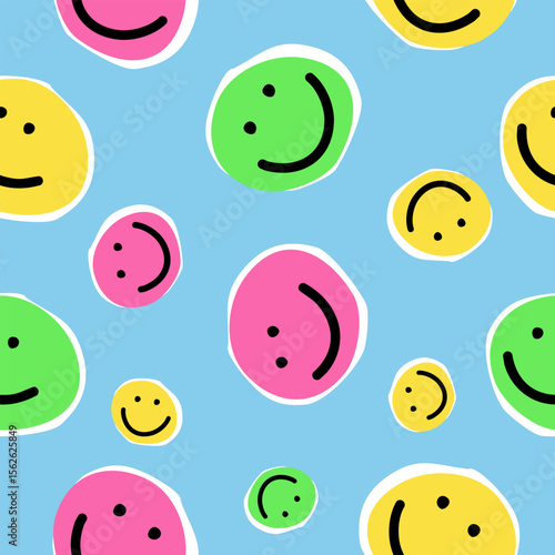 Happy face cartoon character seamless pattern background