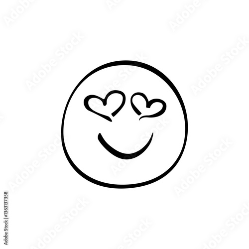 Happy face with heart eyes expressing love and affection in a simple line art style