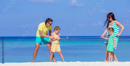 Happy family having fun on white beach