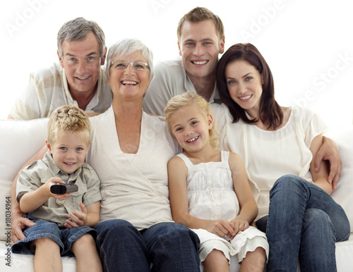 Happy family watching television in living-room