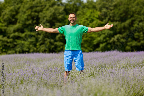 Happy farmer in his lavender field
