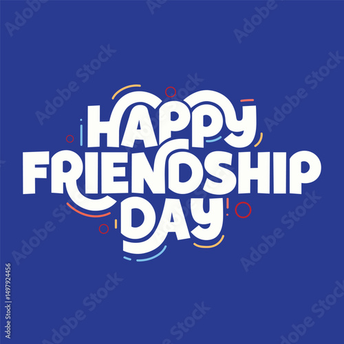 Happy Friendship Day typography greeting card template design. Human relationships holiday celebration poster, banner. Friendship Day sticker, label, tag. Bold font vector illustration.