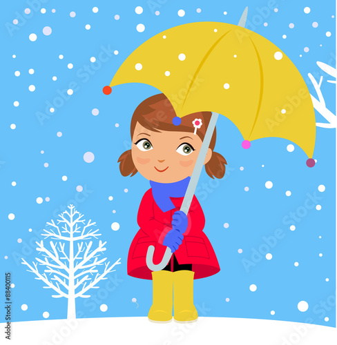 happy girl in winter with umbrella