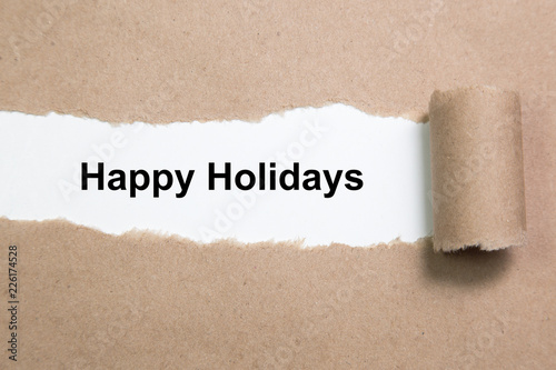 happy holidays text on paper. Word happy holidays on torn paper. Concept Image.