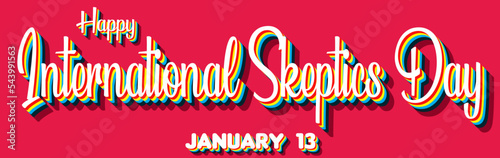Happy International Skeptics Day, January 13. Calendar of January Retro Text Effect, Vector design
