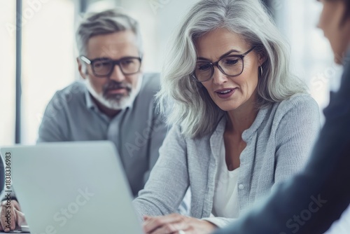Happy mid aged business woman manager handshaking greeting client in office. Smiling female executive making successful deal with partner shaking hand at work standing at meeting table.