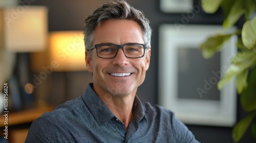 Happy middle aged professional business man, smiling mature executive ceo manager, 45 years old male entrepreneur, confident business owner wearing glasses in office. Headshot portrait