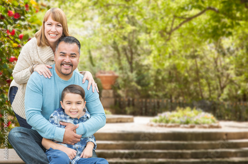 Happy Mixed Race Hispanic and Caucasian Family Portrait at the Park.