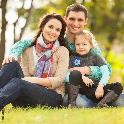 Happy mother, father and daughter in the park