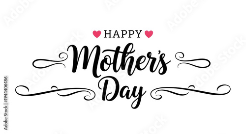 Happy Mothers Day handwritten script with pink hearts and decorative swirls image
