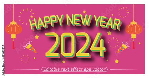 Happy new year 2024 yellow color Editable 3d Text effect eps vactor