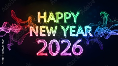Happy new year 2026 celebration with colorful smoke effect