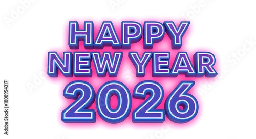 Happy new year 2026 neon style text effect on white background