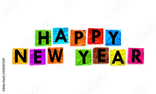 happy new year writing on colorful paper with a white base