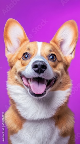 Happy Pembroke Welsh Corgi on Purple Background.