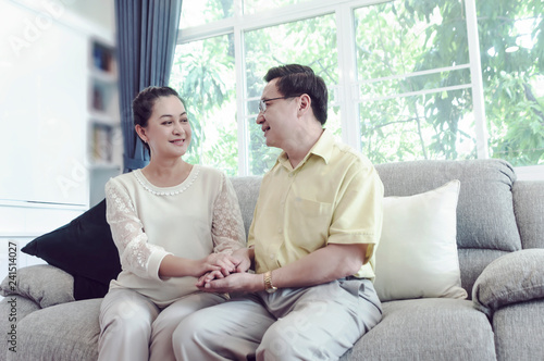 Happy senior couple relaxing at home.