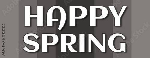 happy spring - text written on grey striped background