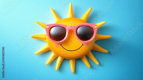 Happy Summer Sun Wearing Pink Sunglasses Bright Yellow Cheerful Smiling Face Tropical Vacation Holiday Festive Design Element Illustration Background