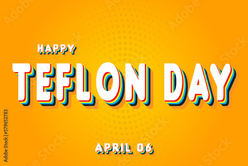 Happy Teflon Day, April 06. Calendar of April Retro Text Effect, Vector design