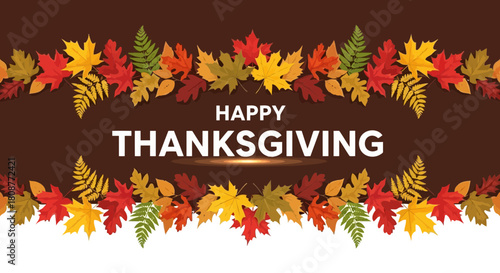 Happy thanksgiving with autumn leaves and colorful foliage in a festive border design