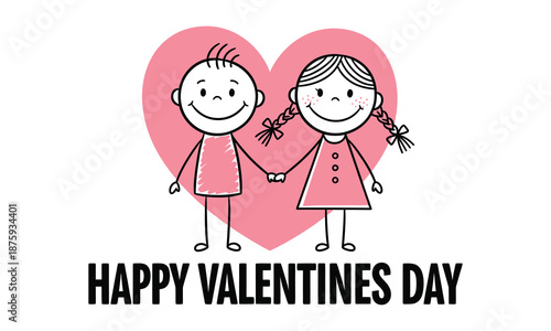 Happy valentines day cartoon children holding hands
