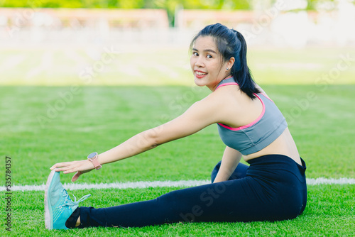 happy woman legs stretching outdoors sport fitness enjoy healthy lifestyle