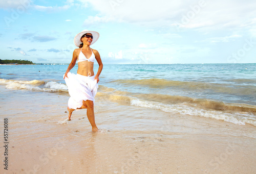 Happy woman on Punta Cana beach.