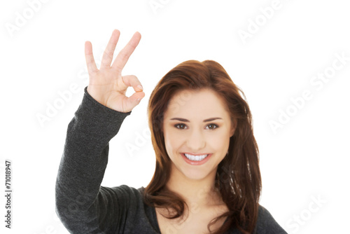 Happy woman with perfect hand sign