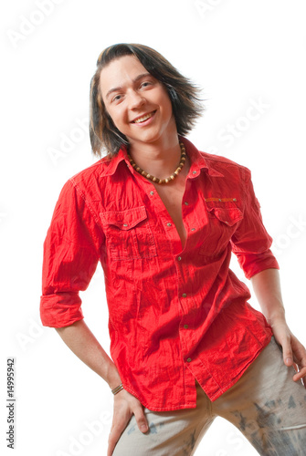 Happy young guy portrait in studio