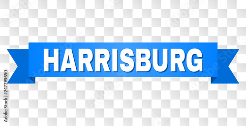 HARRISBURG text on a ribbon. Designed with white caption and blue tape. Vector banner with HARRISBURG tag on a transparent background.