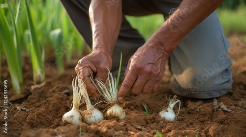 Harvesting Fresh Organic Onions from the Earth by Hand