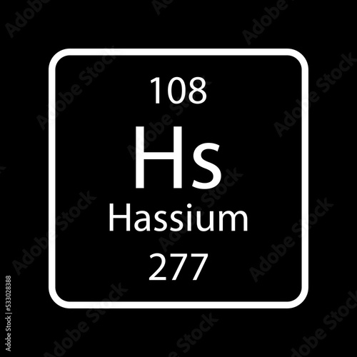 Hassium symbol. Chemical element of the periodic table. Vector illustration.