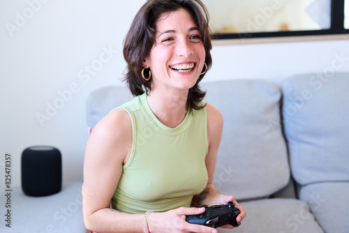 Having fun playing the video console