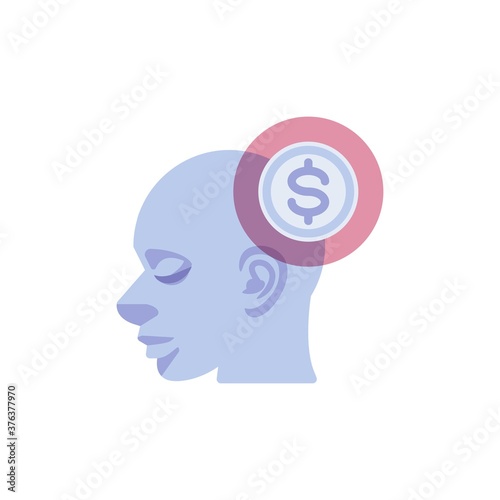 Head and dollar money flat icon, vector sign, money thinking colorful pictogram isolated on white. Symbol, logo illustration. Flat style design