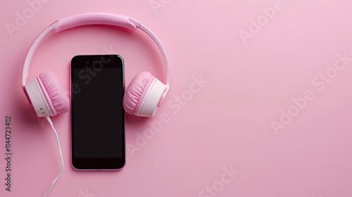 Headphones With Phone. Wireless Technology Concept for Mobile Device Communication