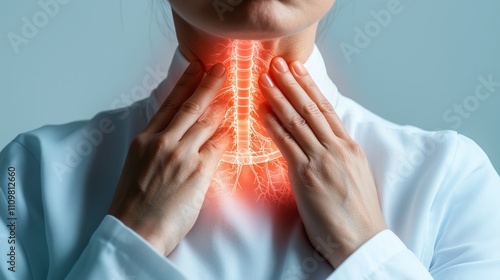Healing actions for thyroid health wellness center health awareness calm environment close-up perspective