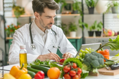 Health professional creating a delicious menu with a variety of fruits and vegetables